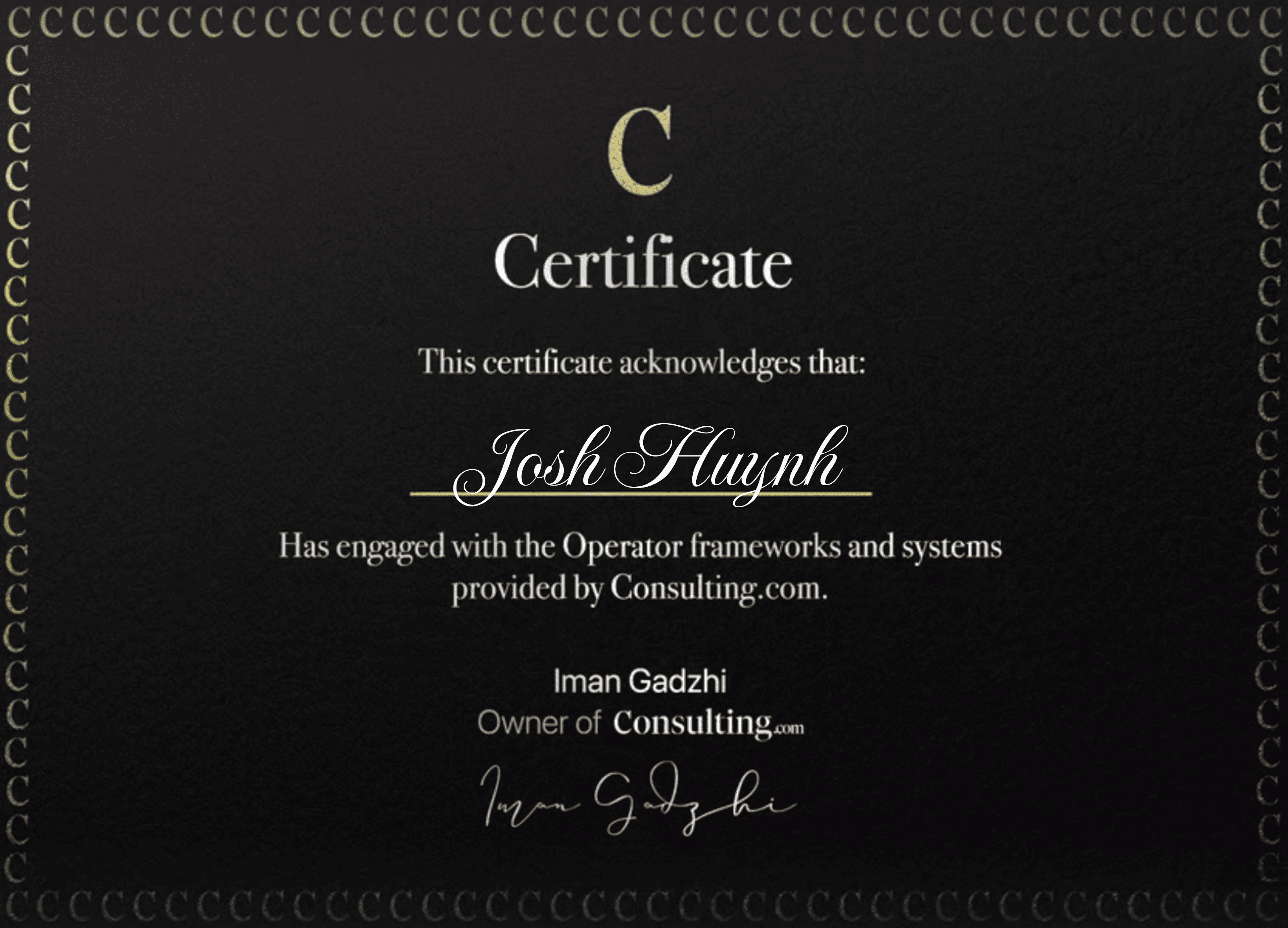 Our team is trained and certified through Consulting.com’s Operator Playbook, working alongside Iman Gadzhi’s team to master the exact model of helping creators monetize through digital products.